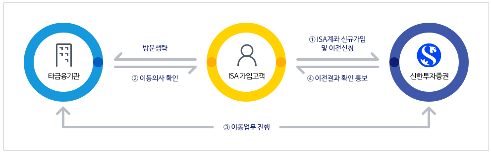 쉽게 말해, A증권사에서 개설한 ISA를 B은행이나 C증권사로 이전 신청을 통해 옮겨서 계속 운용하는 것이죠.